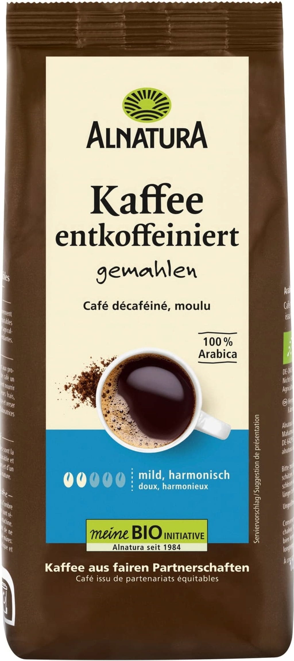 Vollstes Kaffeearoma: Für den Alnatura Kaffee entkoffeiniert wurden Arabica-Bohnen in traditioneller Langzeitröstung veredelt und anschließend gemahlen. Er überzeugt durch seinen milden, harmonischen Geschmack.