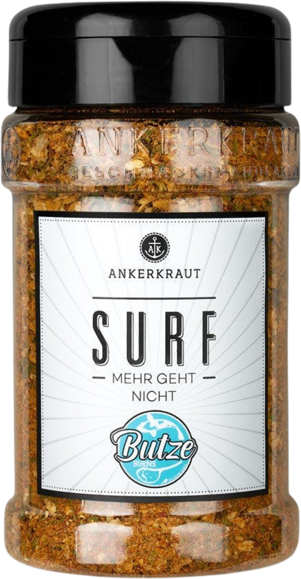 Das Gegenstück zur Gewürzmischung Turf – mit dem Gewürzmix Surf von Ankerkraut verfeinerst du optimal Fischgerichte und Meeresfrüchte, aber auch Schwein oder Lamm erhalten damit eine einzigartige Geschmacksnote. Vor allem Ingwer, Lavendel und Kurkuma sorgen hierbei für ein einzigartiges Aroma.