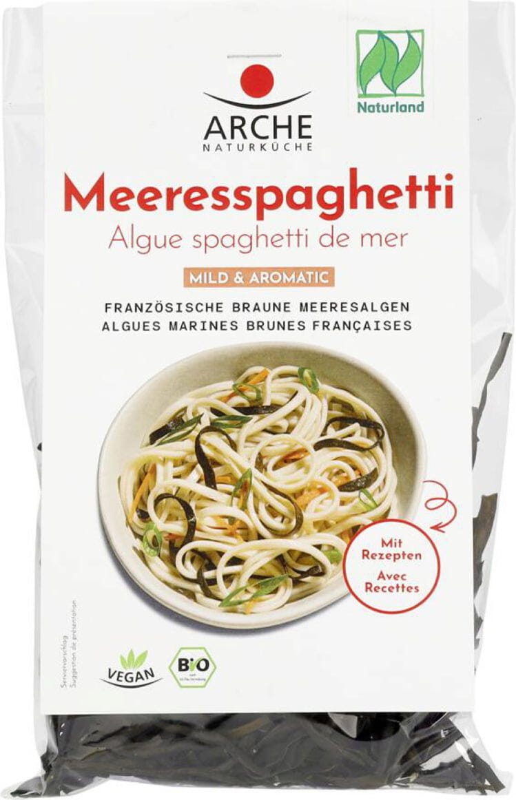 Den Namen Meeresspaghetti verdanken diese schonend getrockneten braunen Meeresalgen vor allem ihrer Optik. Die feinen Streifen erinnern tatsächlich an die beliebte Pasta-Sorte. Außerdem sind sie eine tolle Ergänzung für Nudelpfannen, aber auch Gemüsegerichte profitieren von dem mild-würzigen Geschmack und dem Hauch Meeresaroma.