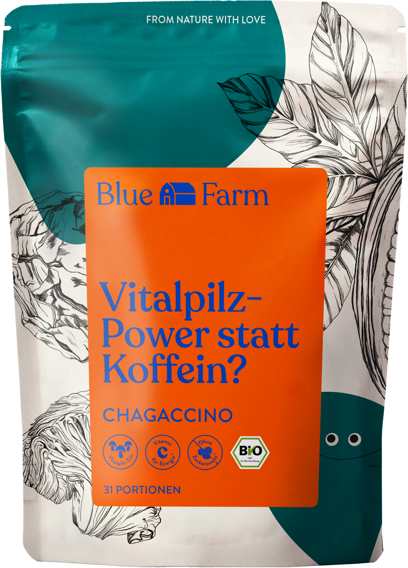 Starte deinen Tag mit einem Getränk, das anders ist: Der schokoladige Bio Chagaccino von Blue Farm kombiniert fermentierten Hafer mit Kakaopulver und wertvollen Pilz-Extrakten aus Chaga, Cordyceps und Hericium für ein unvergleichliches Geschmackserlebnis. Dank koffeinfreier Rezeptur eignet sich dieser Pilzkaffee wunderbar als geschmackvolle Kaffeealternative. Die cremige Textur und der vollmundige Geschmack machen jeden Schluck zu einem wahren Genussmoment.