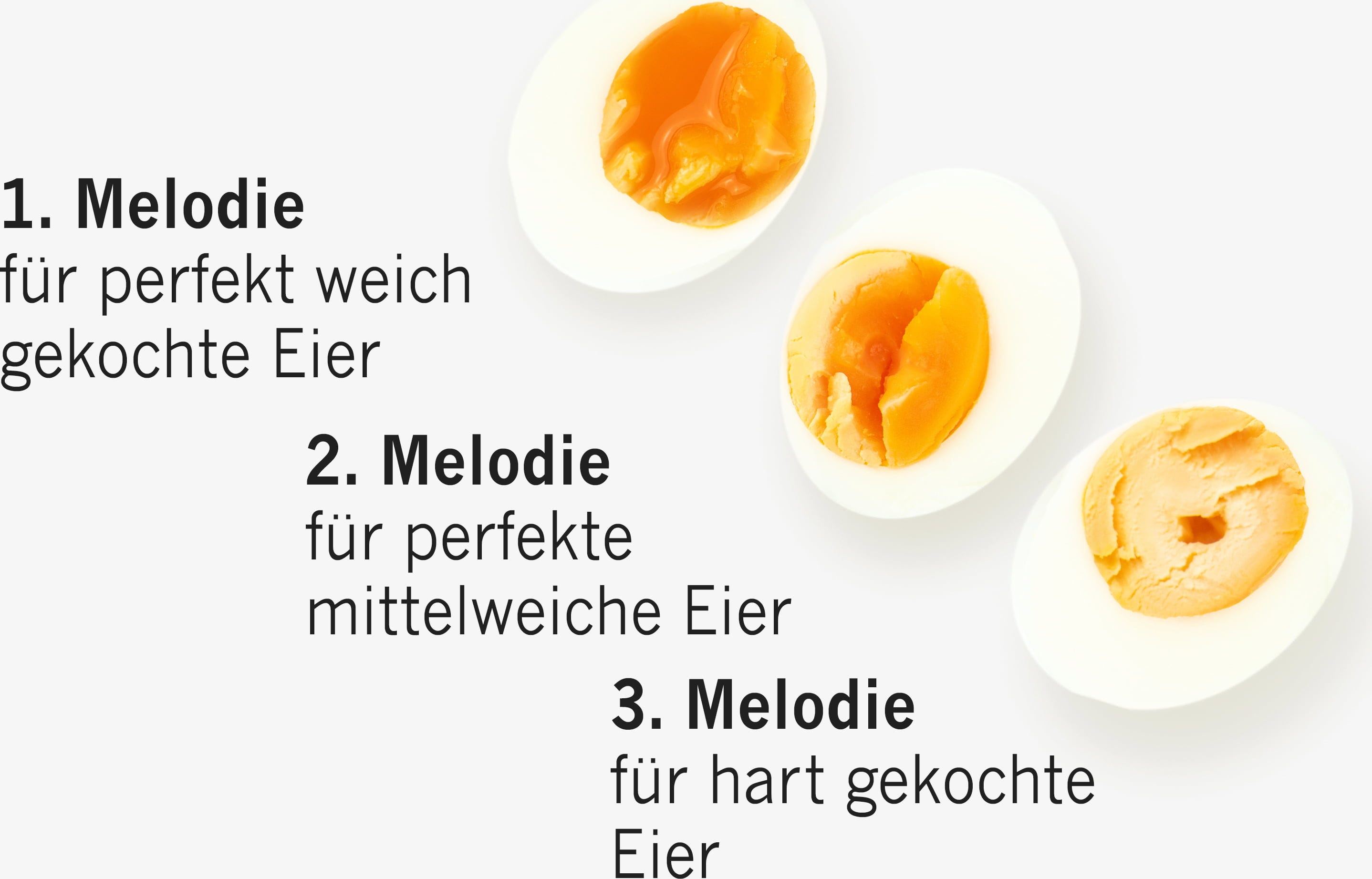 Einfach das Austria PiepEi mit den Eiern lagern, gemeinsam kochen und warten, bis die Melodie des gewünschten Härtegrades spielt. Unabhängig davon, mit welcher Wassertemperatur man startet, welche Eiergröße und auf welcher Höhe gekocht wird.