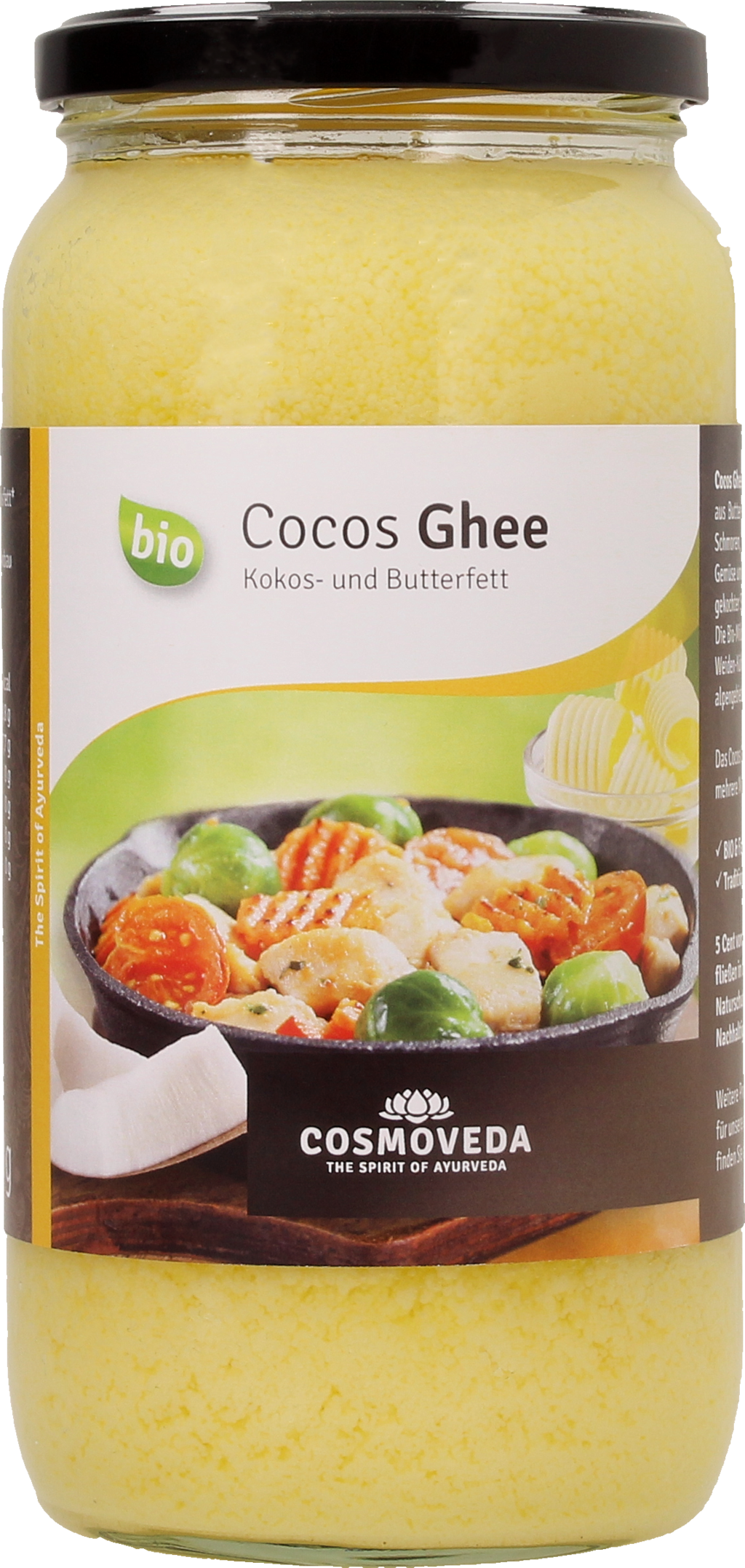 - Es eignet sich besonders gut als Alternative zu COSMOVEDA Ghee und COSMOVEDA Kokoscreme.