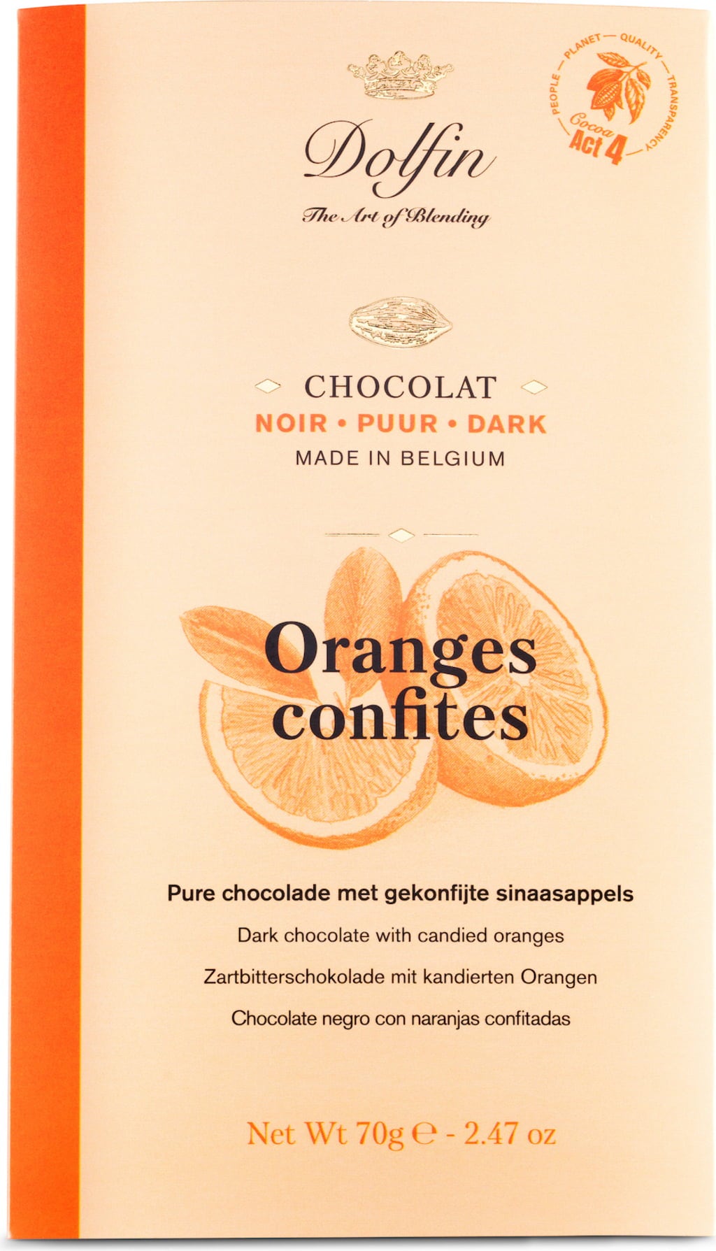 Dolfin Zarbitterschokolade, Kandierte Orangen (70 g)