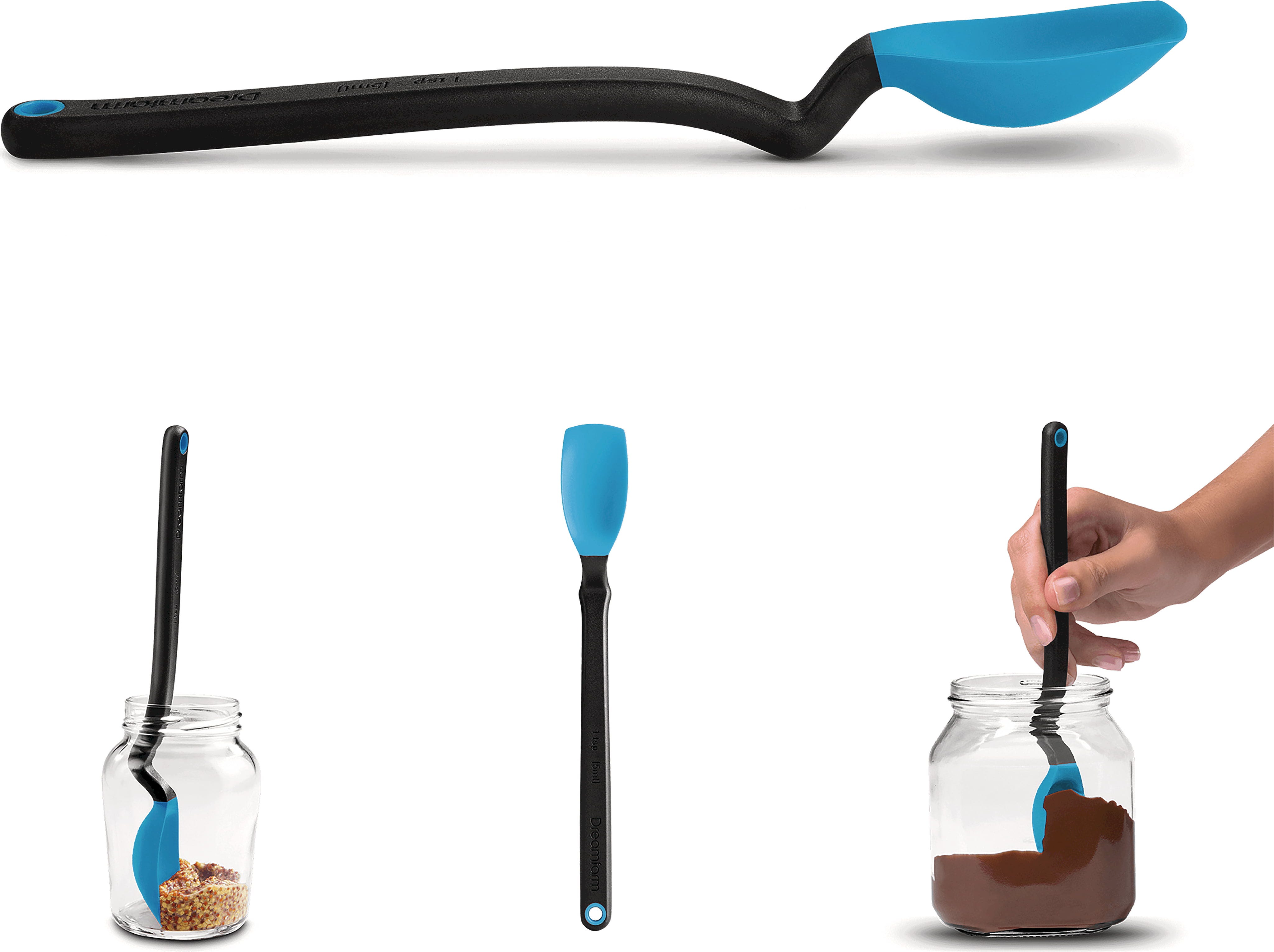 Mit dem Löffel Mini Supoon von Dreamfarm holst du dir ein wahres Multitalent in die Küche, das Rühren, Schöpfen, Abmessen und Ausschaben in einem einzigen Tool vereint. Dank seines flexiblen Silikonkopfs kommst du mühelos in jeden Winkel deiner Marmeladen- oder Schokocremegläser, um Reste restlos auszuschaben.