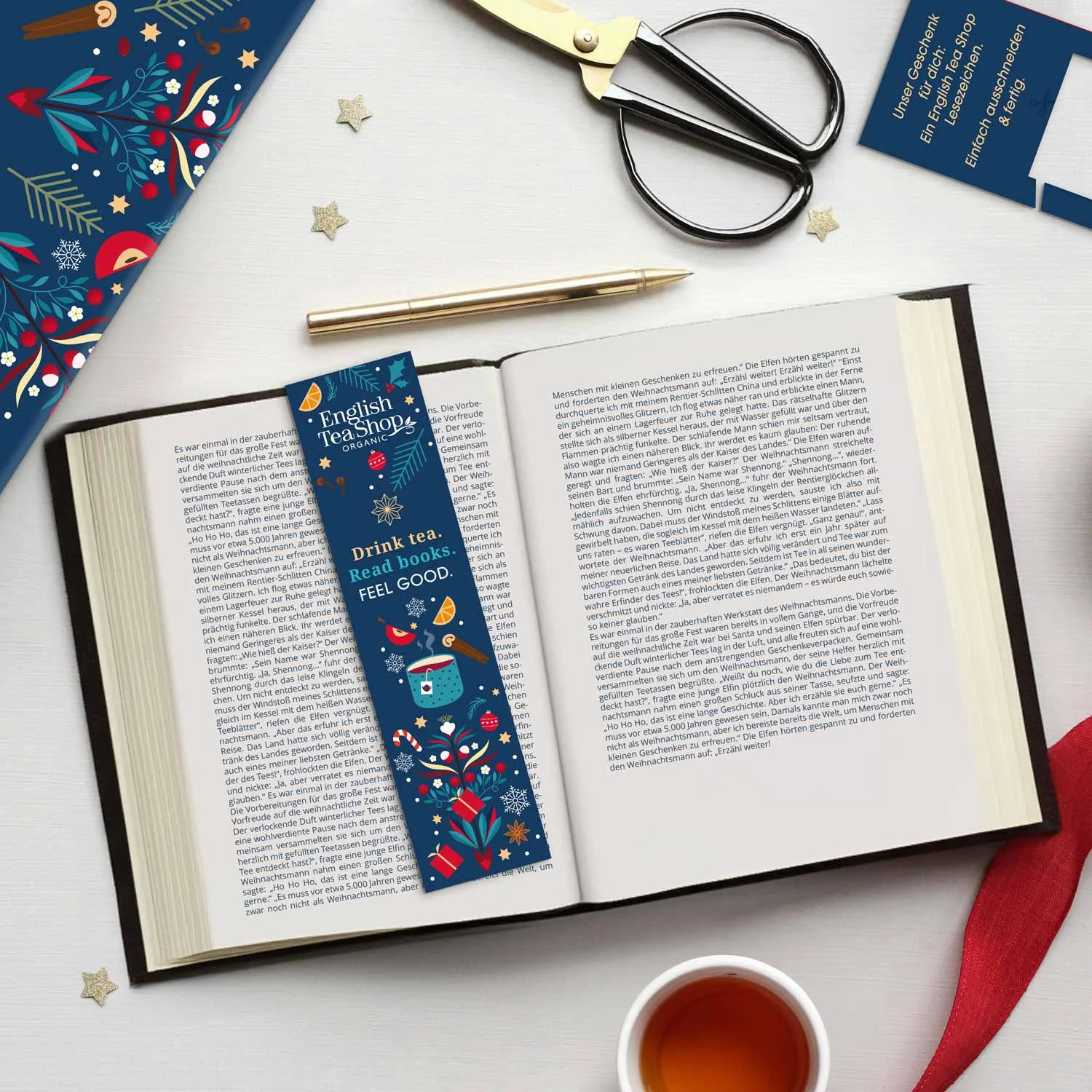 - Ein Lesezeichen von English Tea Shop, perfekt für alle, die Tee und Bücher lieben.