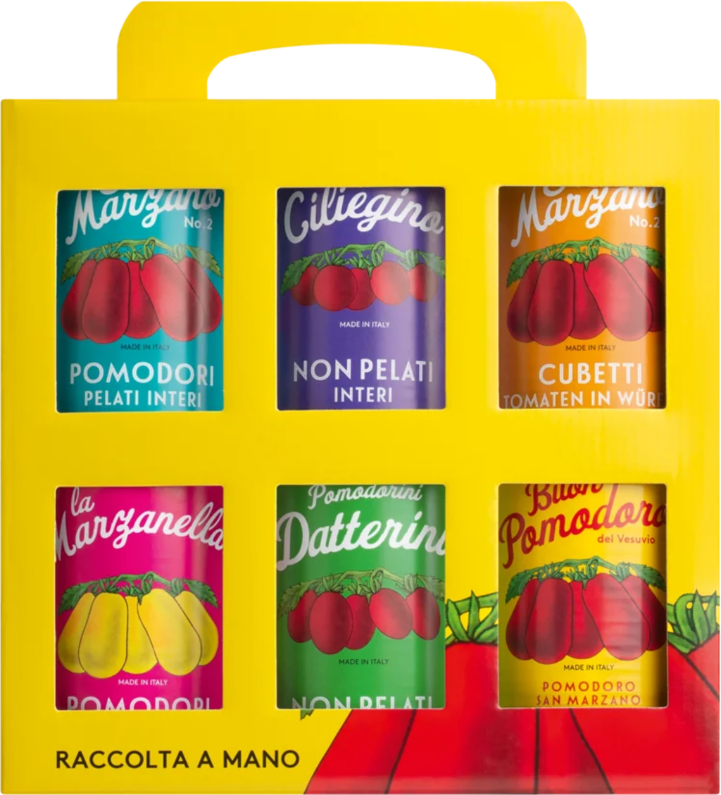 Dieses Set vereint die besten Tomatenspezialitäten von Il pomodoro più buono in einer exklusiven Vintage-Edition. Die Auswahl umfasst verschiedene Sorten wie die fleischige San Marzano, süße Datterini und aromatische Kirschtomaten, die allesamt auf den fruchtbaren Vulkanböden Kampaniens gedeihen. Durch die händische Ernte im vollreifen Zustand und die schonende Konservierung im Wasserbad bleibt das reine, tomatige Aroma optimal erhalten. Ob für die schnelle Pasta am Abend oder aufwendig eingekochte Saucen – mit diesem Träger hast du die passende Basis für authentische italienische Gerichte stets griffbereit.