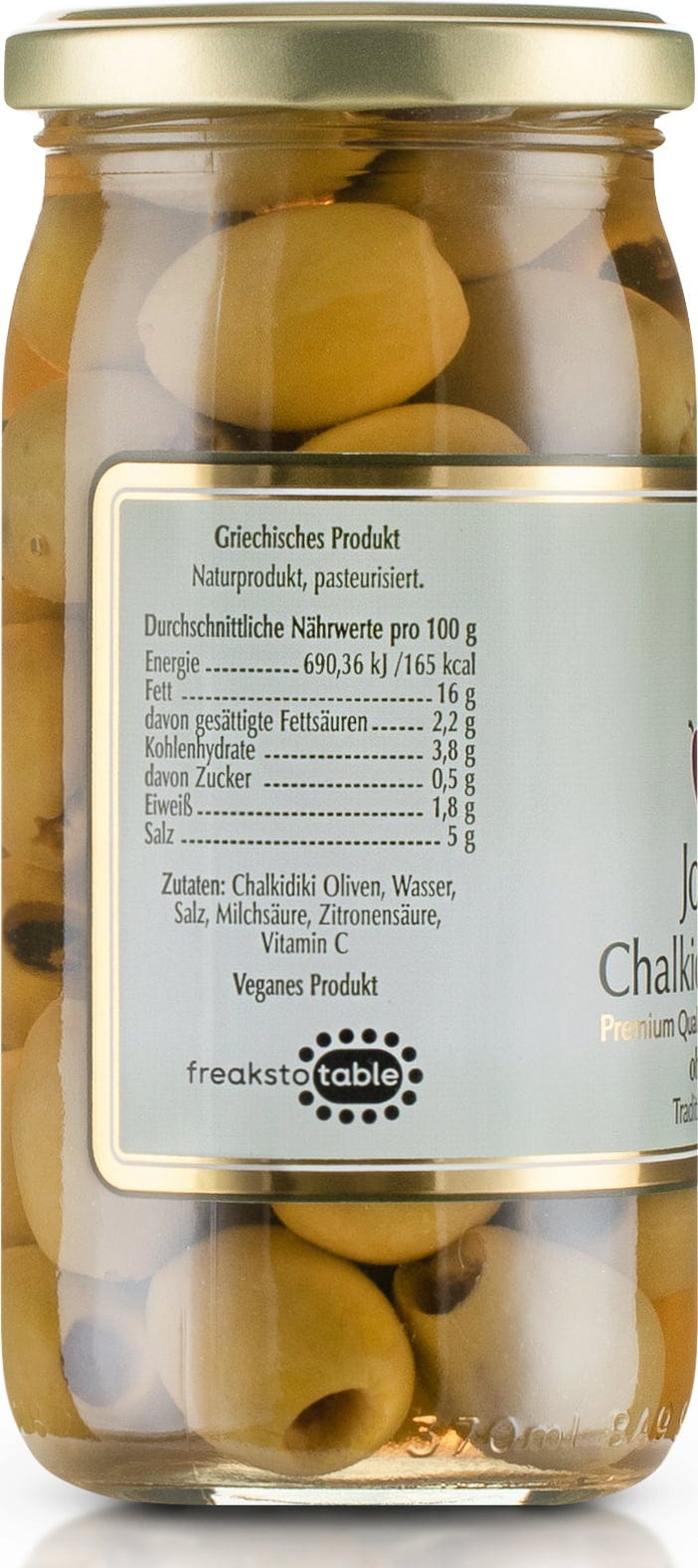 Jordan Olivenöl Chalkidiki Oliven - ohne Kern - 185g Abtropfgewicht, 370 g