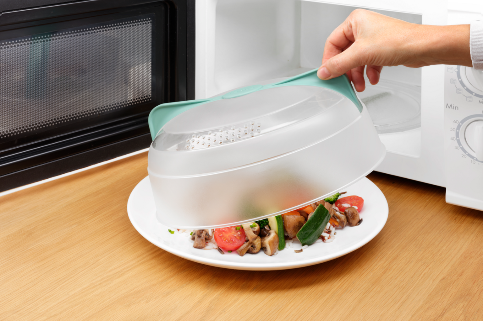 Mit der ebenso praktischen wie formschönen Abdeckhabe bleibt deine Mikrowelle sauber!