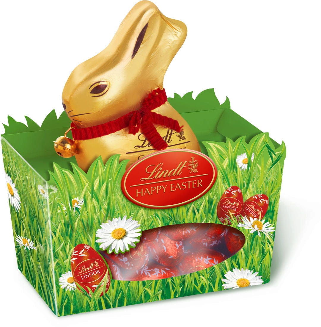 Mit Lindt versüßt du dein Osterfest! Schön verziert mit einer roten Schleife und einem kleinen Glöckchen. Zusätzlich versteckt sich hier noch ein zartes Geheimnis - nämlich die zart schmelzenden Lindor Eier.