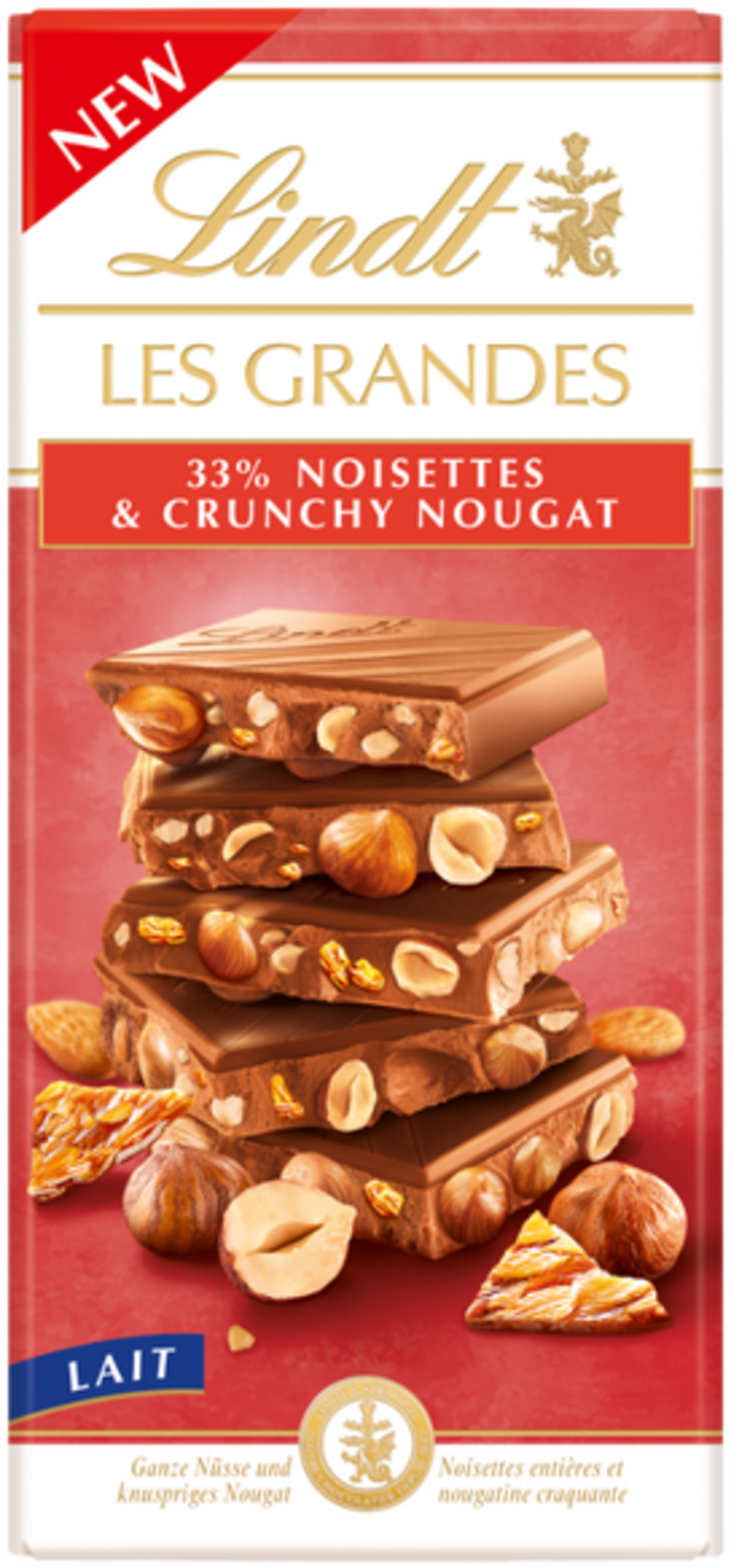 Erlebe eine einzigartige Kreation der Lindt Maîtres Chocolatiers: Ganze, geröstete Haselnüsse und knuspriges Nougat in zarter Milchschokolade. Perfekt für alle, die große Stücke lieben – ob zum Verschenken oder selbst Genießen.