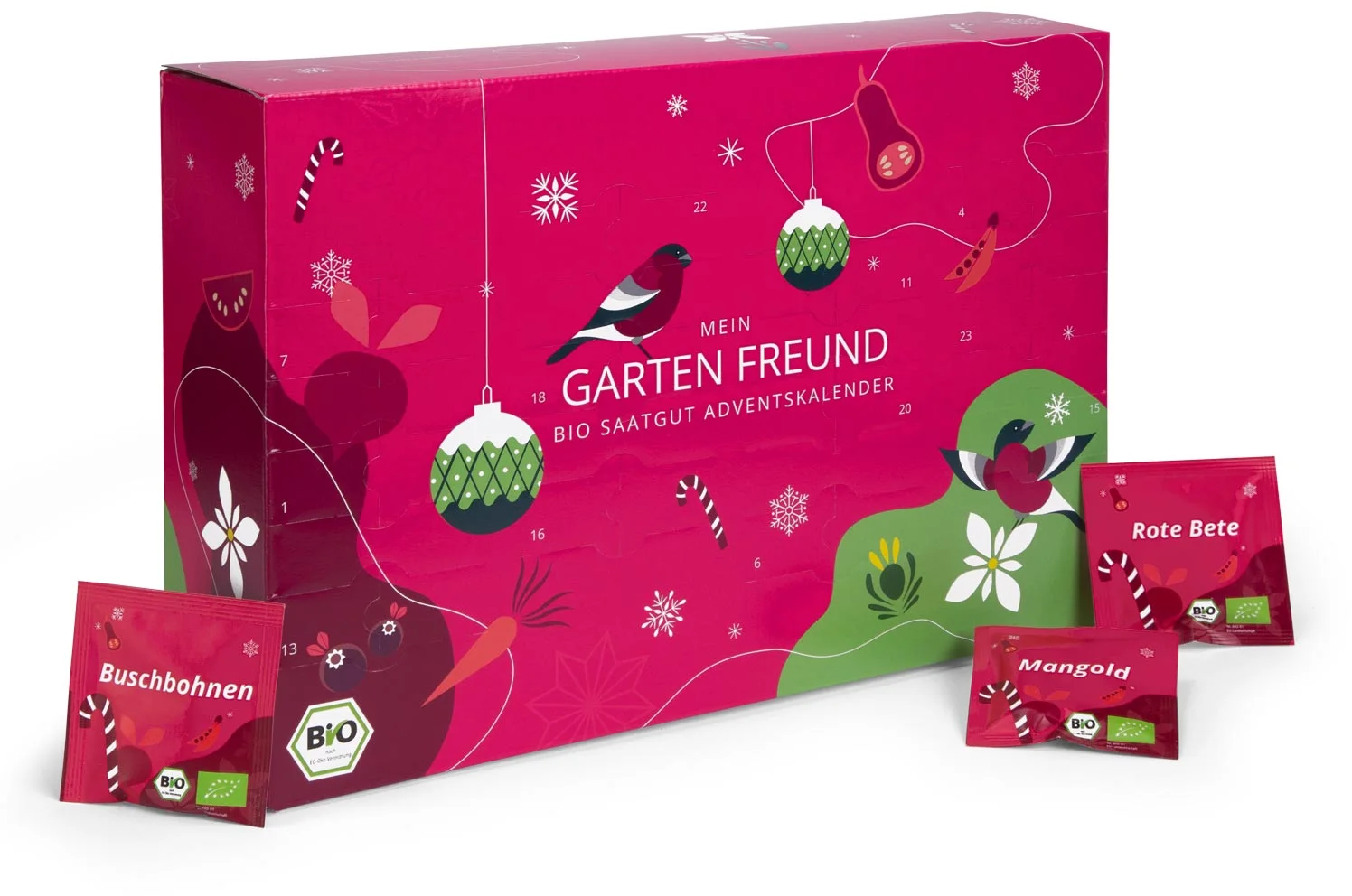 Hier findest du einen ganzen Bio-Kräuter- und Gemüsegarten in einem faszinierenden Saatgut-Adventskalender. Das macht ihn zum idealen Präsent für alle Gartenliebhaber und verkürzt die Zeit bis zum Fest. Doch er geht darüber hinaus - für eine Ernte, die dich noch lange nach dem letzten Türchen begleitet.