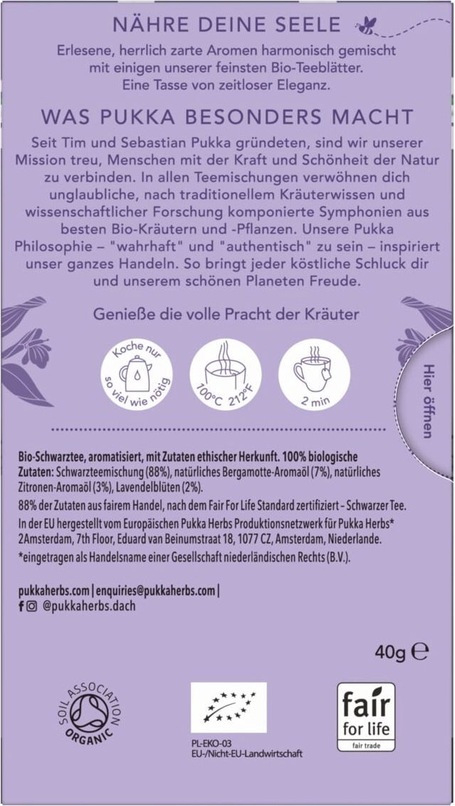| Hersteller: | Lipton Teas and Infusions Germany GmbH, Axel-Springer-Platz 3, c/o WeWork, 20355, Hamburg, Deutschland, kontakt@pukkaherbs.de |
