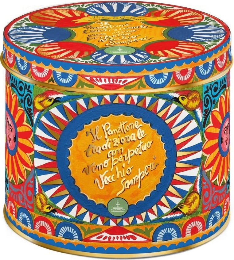Ein Panettone wie kein anderer! Hier beginnt das Erlebnis schon bei der exklusiven Dolce & Gabbana Geschenkverpackung. In dieser eleganten Metallbox befindet sich ein klassischer Weihnachtskuchen aus Mailand, kombiniert mit besten sizilianischen Zutaten: kandierte Orangen, Zitronen und mit sizilianischem Vecchio Samperi ("ewiger Wein") aromatisierte Rosinen. Das alleine ist schon eine geniale Verbindung aus nord- und süditalienischer Kulinarik.
