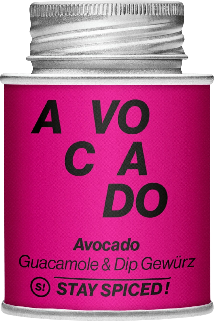 Avocado-Fans haben ab sofort ein neues Lieblingsgewürz: Die Stay Spiced! Avocado - Guacamole & Dip Gewürzmischung ist das ideale Finish-Gewürz für kalte und warme Gerichte mit der grünen Superfrucht.