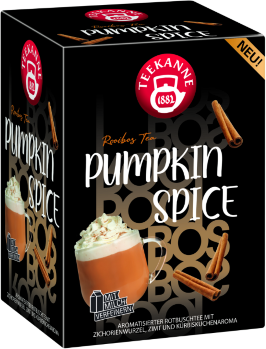 Mit dem der Herbstzeit kommt auch die richtige Zeit für Pumpkin-Spice-Magie! Der köstliche Genuss aus Robuschtee, Zichorienwurzel, Zimt und Kürbiskuchenaroma verzaubert trübe Tage und verwöhnt den Gaumen mit seinem samtig-weichen Geschmack. Für besondere Genussmomente!