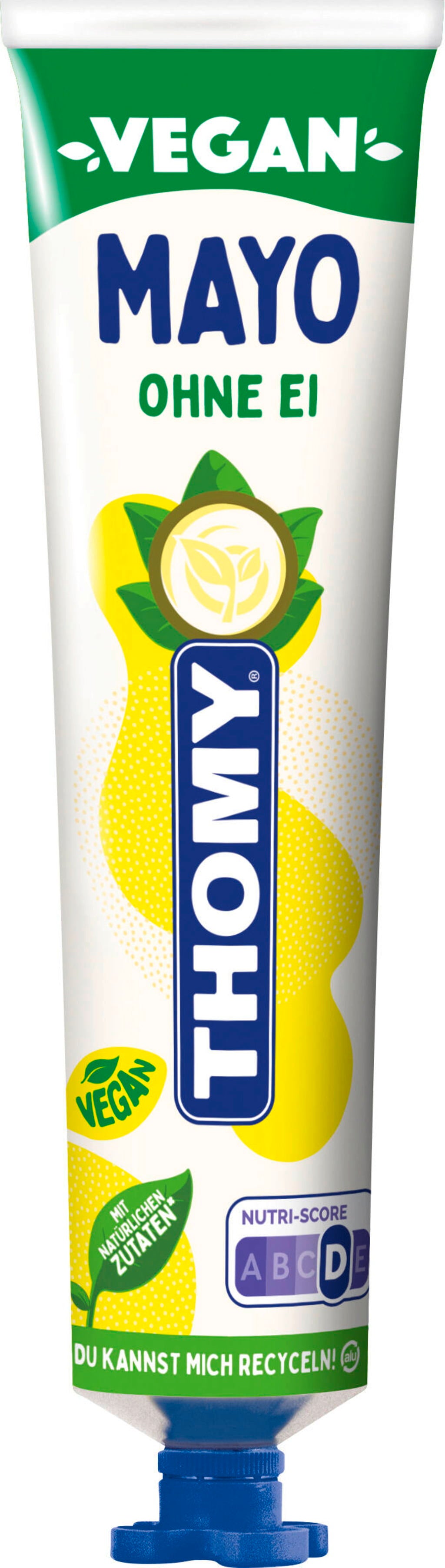 Die vegane Mayonnaise von THOMY bringt dir den vertrauten, cremigen Genuss der klassischen THOMY Mayo – nur eben rein pflanzlich. Perfekt für Salate, Sandwiches, Pommes und alles, was einen fein abgestimmten Mayo-Kick verdient. 100 % vegan und frei von Farb-, Aroma- und Konservierungsstoffen.